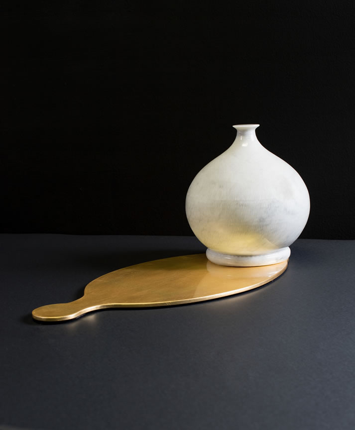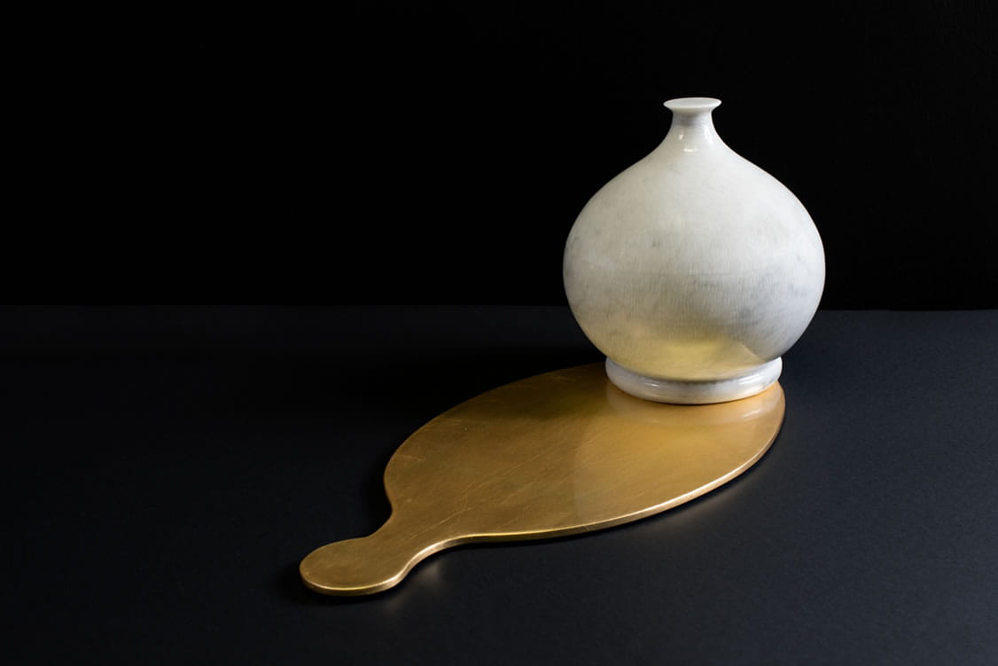 Materiali utilizzati: marmo bianco di carrara, legno e foglia d’oro