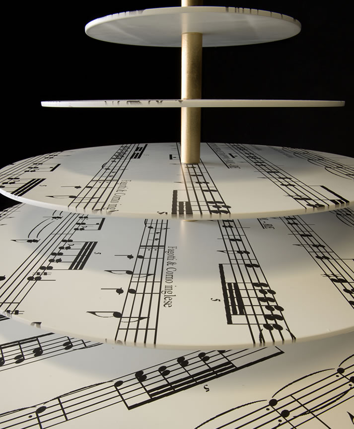 Materiali utilizzati: legno laccato bianco stampato e foglia d’oro